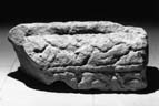 A (long) : The roof pitch is steeply curved and covered with horizontal interlace in broad, flat strand cut with a punch. The pattern is closely woven three-cord plait. The eaves have a roll moulding. Below, the side continues the pitch of the roof and has faint traces of interlace. Patterns terminate at one end.