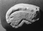 Such gable finials, common in Ireland (Leask 1955, 46–7, fig. 20; Harbison 1970, 54–7, figs. 18–20) have recently been recognised in Northumbria at Heysham, Lancashire (Andrews 1978, 2)[1] and Lastingham in Ryedale (Lang 1991, 171–2, no. 9). This example is plainer than those but well cut and dressed. It is an architectural appendage that might be found on a seventh-century or early eighth-century church, such as the one documented at Lastingham (Bede 1969, 288, iii.23). Most of the monuments at Lythe represent a Viking-age cemetery, but this finial, together with the door jamb, no. 36, suggests a pre-Anglo-Scandinavian church. Lythe is visible on its headland from the next promontory, Whitby. It is possible that, separated only by Whitby Strand, Lythe was a cell of the Whitby estate (Cambridge 1995b, 140–3) at the time when the monastery was under the strong influence of the Irish church through Lindisfarne. The smoothly dressed surface, possibly rubbed with an abrasive stone, the absence of incised or relief ornament, and the neat edge moulding put the finial's treatment very close indeed to the series of early crosses from the abbey site at Whitby (see Chapter VI).