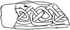 A: Ryder's drawing shows a plain edge moulding flanking loosely disposed half pattern F interlace with lying strands. Broken at both ends and on one side.