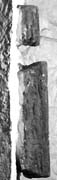 C (broad): Both pieces now built into the wall. No ornament survived on the larger fragment, but the smaller apparently retained its cable moulding on both angles and had a double-stranded interlace showing one register of simple pattern E.