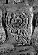 There is too little of the pattern to be definitive about its relationships. Irregular double-stranded interlace or twists are found across the northern half of the region, for example at Wighill (Ills. 766–8). The attempt at a knot with trailing ends could suggest influence from the major cross at nearby Leeds (no. 1Ai, Ill. 492), but this is a very clumsy work.
