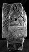C (broad): Dressed plain, perhaps for a later reuse. There are traces of an edge moulding on the left and possibly the lower edge of a circle or loop near the top.