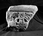Upper part of slab, including broad flat border moulding and part of the right border; decoration in low relief on one face only.