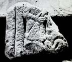 A (broad): A double roll-moulding border on the left flanks some form of (now unidentifiable) figural scene with traces of an arm, hand and drapery to the left.