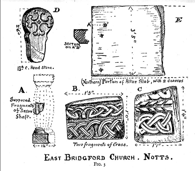 East Bridgford 1a, 1b, 2 with other carved stones (after Hill 1903, nts) Plate: 26.