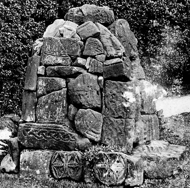 The Bromborough sculptures in a pile on the rectory lawn, photographed before their disperal in 1909 (nts) Plate: 43.