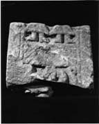 A (broad): Surrounded by a wide outer flat-band and narrow inner roll moulding. The remains of two panels are separated by a wide flat panel. (i) The lower half of two figures with feet out-turned. Their skirts are ankle length. (ii) Indecipherable.