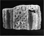 A (top): Edged on the left with a double flat-band moulding. In the centre there is what may be the shaft of a cross, outlined by a flat-band moulding and enclosing, at the top, two punch-outlined pellets, and below, a register of simple pattern E, turning into a composite of a Stafford Knot (E) and a free ring. At the top right are traces of indecipherable interlace, perhaps forming a horizontal arm of the cross.