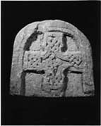 A (broad): A cross in relief is set in a broad flat-band frame with a wavering grooved inner moulding. The cross is type A11. Its shape is outlined by a narrow flat-band moulding enclosing interlace in the arms and a knot in the centre. The interlace is muddled and is produced by splitting the two strands which link round the centre into four strands, as they enter the arm. There are clear pick- or punch-marks round the cross.