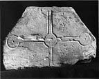 A (broad): The horizontal arm of a type G1 cross, with a circular centre survives; the uprights, but not the terminals, of the other arms also survive. The cross is incised and has been laid out geometrically. The lines of the straight-edge and the holes for the compass points are still visible.