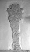 It has been suggested that this is a supporting figure for a crucifixion, and the figure of Mary in the Ramsey Psalter (London, British Library MS Harley 2904, fol. 3v) is indeed similarly elongated and sharply tapering (Temple 1976, cat. 41, ill. 142; Raw 1990, pl. XIV). It is important also to remember that the remaining outline might be narrower that the carved figure, with the present edges simply representing undercutting to create the effect of a figure in-the-round. However, when taken in conjunction with the building depicted on the panel on the south side of the chancel arch (Bibury 7, Ill. 42), it would seem possible that the figure might be part of a set of narrative scenes — perhaps depicting episodes from the life of Christ. The figure's slender proportions and apparent lack of clothing might in this case suggest a close-wrapped body, such as Lazarus coming from the tomb.