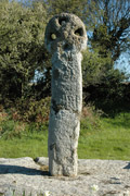 Cross, with plain round head pierced by three holes, with a projecting roll-moulding at the neck. The shaft is of rectangular section at the bottom but rounded at the top. It is set into a modern base. The right side, containing face D, is not straight. Andrew suggests that this may be due partly to entasis and partly to damage (Andrew 1937–42, 223). As Langdon says, it 'is a most quaint and irregularly executed monument' (Langdon, Arthur 1896, 180).