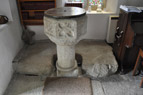 Broken section of an undecorated rectangular cross-base. The smooth-sided rectangular mortice is cut completely through the stone. Although the stone is broken, a slight return on the broken side shows that the mortice is nearly complete. On the upper surface on each of the short sides of the mortice a slight recess may show where the cross was seated.