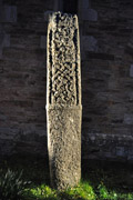 C (broad): This face is badly worn and not easy to examine as it is close to the wall of the church. The description therefore relies to a large extent on Langdon's drawing (Langdon, Arthur 1896, fig. facing 370; see Ill. 360). The top panel has an incomplete four-strand plait. The second panel contains the inscribed text, incised in two horizontal lines. The letters, 5 to 6 cm high, are highly deteriorated and it is not even certain what script was used. The text is probably complete and reads:
