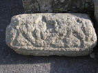 Small section from near the end of a recumbent type g coped grave-cover. In plan, this fragment tapers and it is uncertain whether the complete monument would have been boat-shaped (that is, at its widest near the centre, as Langdon thought: Langdon, Arthur, 1896, 417), or wedge-shaped, like the similar monument at St Tudy (Ills. 229–33). The angles have a simple roll-moulding and there are traces of decoration on the two sloping faces of the 'roof' only.