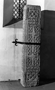 A note in the parish register reports that the west porch was demolished 53 years after its construction, in April 1866, and a new western doorway was provided leading directly into the tower.[2] On this occasion, the tympanum was carefully re-set in the fabric of the south wall of the tower, where it remains (Godfrey 1907, 213; see Hawksworth 2 in Appendix B, p. 208); but there is no mention of similar consideration being given to re-mounting the earlier stone that had formed its lintel. Indeed, Romilly Allen found himself praising the architect of the new works for 'not destroying it altogether' (1901–3, 88); and according to W. Stevenson in 1897, it was sold to a stone mason in Newark to make window-cills of, 'but he never completed his purchase' (BL, Add. MS 37604, 384–5; Stapleton 1903, 26). Presumably, despite its seniority, the importance of Hawksworth 1 was less easily recognized because it did not carry an inscription! The stone was left propped up against the south wall of the tower, where it appears in early photographs (e.g. Phillimore 1897; Godfrey 1907, 218; Stapleton 1903, 26 and illus.; Stapleton 1911, 123–6). It was evidently moved inside the church on 12 November 1908 (Stapleton 1911, 125), perhaps following the strictures contained in Godfrey's book in which he complains of the vegetation growing over it, and also points out that a clearer understanding of the stone will be had if it can be moved inside (Godfrey 1907, 219). We presume it was fixed in its modern position on that occasion and that the finely wrought metal armature, designed to hold it at a slight distance from the tower wall, was also a response to Godfrey's remarks.