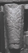 This stone has not formed the subject of any form of academic assessment previously. On the rare occasions it has attracted remark it seems to have been considered to be some type of very crude stone effigy or burial monument, with the implication that the decoration depicts a shrouded figure (Clarke 1909 called it 'the lower part of a monumental slab, shewing feet and shroud rudely carved'; Mee 1938, 262, 'a fragment of another ancient stone [not the alleged Roman coffin just mentioned] with crude carving of feet and a shroud'). In practice, it looks like no medieval or post-medieval effigial monument that we have encountered; and no pre-Conquest funerary monument either. And when they do occur — in stone or brass — shrouded figures are not depicted with their feet protruding from the shroud.