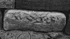 The decoration is visible on one face only, being built into a wall. It is contained within a wide moulding on the bottom edge with the top edge apparently broken away. The decoration consists of what appears to be a two- or three-strand simple interlace but it is too worn to be certain; it seems to end in a terminal at the right-hand end; the left-hand end of the decoration is broken away.