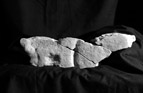 A (broad): To the right, the reconstructed fragment has the remains of a slightly curved feature with a flat, dressed surface. This is adjacent on the left to a carving of complex but indeterminate nature.
