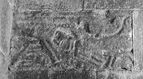 At the top of the panel is a horizontal cable moulding extending almost the full width of the panel, below which is another cable moulding which extends only half the width of the panel from the left. At the bottom of the panel are the remains of what appear to be another moulding on the left-hand side but this is badly worn and incomplete.