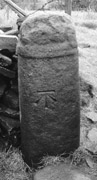 The shaft is one of the round-shaft monuments which is ovoid in section. It is undecorated except for a worn double collar close to the break in the top of the stone. An Ordnance Survey benchmark has been chiselled on one of its broader faces.
