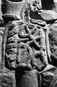 Prominent on the left-hand side of this fragment is a substantial cable edge moulding with a strand extending from it into the decorated panel to the right. Within this area is part of an irregular interlace. A diagonal strand crossing can be seen clearly just above the centre of the panel together with a V-shaped bend above. On the right-hand side is a vertical strand with a circular loop below. The interlace appears to pass over and under the vertical strand. The panel appears to be truncated on the right-hand side, so that the full extent or remainder of the pattern cannot be discerned.