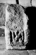 D (narrow): A run of three-strand interlace is contained by the angle moulding; the lower portion of this is obscured by the mortar still adhering to the surface.