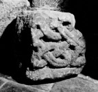 This piece is decorated on its only remaining face with a simple interlace design which appears to have comprised a series of turned, Stafford Knot pattern with looped terminals and doubled strands. Each side of the pattern is linked to the other by cross-over strands. Only one register now survives although it is clear that the pattern continued. There are the remains of an edge moulding on one side; the other is dressed-off.