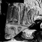 Lower Register: The area below the horizontal moulding traversing the stone is badly damaged, leaving no indication of any carved decoration that may once have existed.