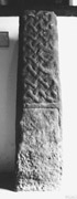 B (narrow): Decorated by a series of two-stranded, spiraliform interlace patterns joined together by the two stands. At the top, these diminish in size corresponding to the taper on the shaft. The horizontal arrises are badly worn.