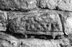 A (broad): A thin horizontal roll moulding separates a panel of worn interlace from what appears to be the vestiges of a further panel, framed by two plain mouldings contiguous with the horizontal moulding. The carved remains of this panel consist only of two slightly curved pieces of carving in deep relief.