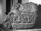Other than the piece once recorded at Repton (no. 18, Ills. 347-8), hogback monuments are relatively rare in the Midlands; elsewhere they are generally assumed to have rested over a grave and are related to the period of Scandinavian settlement (e.g. Lang 1984). The surviving animal head at one end of the gable ridge strongly suggests that like other examples a similar (confronting) head would have adorned the other end of the stone. Lang (1984, 89) associated the monument type with Norse settlement and particular locations on the edge of relatively marginal land. However, this does not seem to apply to Derby, although further to the north of Derby, such landscapes exist. Whether the monument was erected to commemorate a Norseman is unknown; unlike York where control is known to have been held periodically by both Danes and Norsemen, the leaders of Viking-period Derby are not recorded.