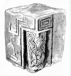 This is one of a pair of imposts (see Derby 12) now only known as a drawing included in Stevens’ letter of 1845 ((—) 1845b, fig. between 76–77) which was reproduced by Cox (1879). Only two faces of the impost (A and B) were illustrated.