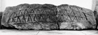 This hogback differs from the majority of those found in Cumbria in its low squat proportions. Most of the details of its ornament can be paralleled across a scatter of sites: the tegulation type is geographically widespread; the beasts' ears have exact analogies at Brompton, Yorkshire (Schmidt 1970, fig. 6); the jaw chevrons are found again at Sinnington, Yorkshire, and Meigle, Perthshire (Collingwood 1907a, 386; Lang 1972–4, fig. 5). The closest parallel for the general composition comes from Wycliffe, Yorkshire (Schmidt 1973, fig. 28a), which uses a bodiless head of similar proportions, moulded borders to a plain gable-end, and a panel set immediately beneath the animal. Since, however, Gosforth 5 also has a bodiless head set over a panel, this apparent close link across the Pennines may not be particularly significant. The curved moulding presumably represents a stylistic development from the clasping paws of end-beasts like those at Brompton, Yorkshire (Bailey 1980, pl. 22).