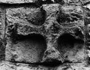 The cross type is Anglian and common in the ninth century. The piece may be unfinished since it shows only rough working. A similar but more decorative plaque adorns the west wall of Middleton church (no. 9; Ill. 694), in an identical position over the west doorway of the eleventh-century tower, though its ornament is ninth-century. The Hovingham plaque was probably originally turned through 90 degrees to judge from the proportions of the arms and the gap on the left-hand side.