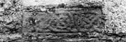 B (narrow): If this is a shaft fragment, then the visible face is the narrow side. There is no taper and the panel is terminated at the left-hand end. A plain edge moulding surrounds the panel, slightly wider at the end. The panel contains two registers and traces of a third of surrounded alternating half pattern C, using lightly modelled strands. The interlace apparently ended in a bar terminal.