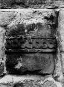A fragmentary section of a cylindrical shaft. The lower portion is dressed but undecorated. Above is a narrow roll moulding encircling the shaft, surmounted by another, the two containing a horizontal band of simple twist; the strands are humped in section.