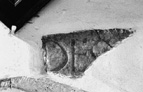 This piece is clearly ex situ and is normally assumed to have been a voussoir (or part of one) from an arch-head similar to that opening into the south porticus (see Breamore no. 2). It may be from the destroyed pre-Conquest chancel arch or north porticus arch. The shape of the stone provides no supporting evidence for this hypothesis; only the upper edge may be original, but this is partially overlain by later plaster and it is not clear if its slight curvature is an original feature or the result of reuse. Whether or not the letters are arranged in a straight line or on a slight curve is impossible to ascertain without photography or drawing in the same plane as the stone. The fragment presumably reached its present position when the chancel arch was rebuilt in the fifteenth century, and it was used to patch the wall above the newly inserted arch head.