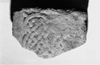 The simplest way to reconstruct this piece is as one end of a rectangular slab. The damage to the sides makes it difficult to decide whether the long edges were originally parallel, or whether the stone tapered.
