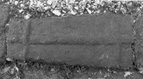 Tapering grave-cover with squared ends. It has a broad relief median moulding crossed close to each end by a similar moulding spanning the width of the stone.