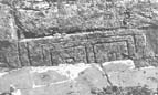 Part of a rectangular grave-marker with incised decoration on the visible face.