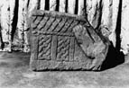 Central fragment of a hogback with the foreleg of an end-beast; broken but little weathered