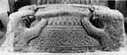 This hogback is of type a (panel) and shares many of the features of nos. 17 and 18. Its array of triangular panels with triquetra, however, is unique and accommodates well to the legs of the end-beasts. There are more signs of wear on the creatures, but their proportions, posture and muzzles suggest that the monument may have come from the same hand as nos. 17 and 18. The closely-packed plain strand of the knotwork is paralleled on some of the crosses at Brompton, for instance no. 9 (Ill. 51).