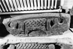 A (long) : Below the ridge and between the end-beasts' paws is a horizontal strip of four-strand plain plait, clumsily cut and with no edge mouldings. It has six stages and the hole-points are deeply cut. The strand is fairly broad. Below is a recessed semicircular niche with signs of rough dressing.