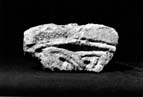 E (top): A double moulding and traces of interlaced strands survive. There is a patch of hard white substance that could be paint or lead which cuts the pattern. (This, according to Cottle and Lowe, plugs a hole.)