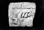 This is the corner of a slab, possibly a grave-cover, and like Keynsham 9, 10 and 12 these could have been the covers for graves inside a church or porticus. These were probably high status graves since the commonest type of grave-cover in this period simply bears a cross. These pieces with delicate plant ornament are an indication of the importance of the site, which had been a royal possession (Costen 1992a, 174). The traces of a thin granular covering of crushed brick and sand is noteworthy on all faces. The rather random placing of the lobed frond and the pellets against an empty background is again reminiscent of later ninth-/early tenth-century metalwork.