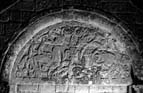 Tympanum over blocked south doorway, with two ribbon-like beasts in an elaborate tree-flower (Ill. 556). Despite attempts to see this as pre-Conquest (Clapham 1930; Taylor and Taylor 1966) the foliage and its ornament are most plausibly Romanesque. But it is of interest that Domesday Book records that Leofgeat/ Leofgyth, who held Knook at the time of the Domesday survey, 'made and makes the King's and Queen's gold fringe' (Thorn 1979, ch. 67, sect. 86) — thus performing the same service at both the Anglo-Saxon and Norman courts (Dodwell 1982, 75, 78, 227). Since there can be a close resemblance in the motifs to be found on both embroidery and sculpture (see the Cuthbert stole and maniple, Ills. 535–8), the same inspiration from late Saxon art may have been transmitted here by the continued use of resident craftsmen.