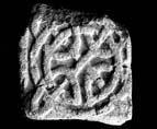 A: One edge moulding survives and a nearly complete circular knot of encircled pattern C (Cramp 1991, fig. 19). The strand width is about 12mm. Below this was a bold cabled moulding above a plain panel (see Dobson 1931, pl. VII).