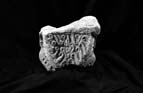 A: One face is concave and shield-shaped, and on either edge are rows of inward facing 'pot-hooks', one of which on each side is extended into the middle. The central section has a jumble of similar features.