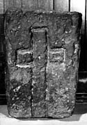 A (broad): A separately outlined upright and two side arms form a plain Latin cross (type A1) which dominates but does not fill the face. The outline is deeply gouged rather than incised so that the cross itself seems to stand out. The edges of the side arms are 'bevelled' away from the centre. At the centre of the crossing is a small gouged depression: it is difficult to see what this was for but it may have been to do with measuring-out rather than to provide a setting.